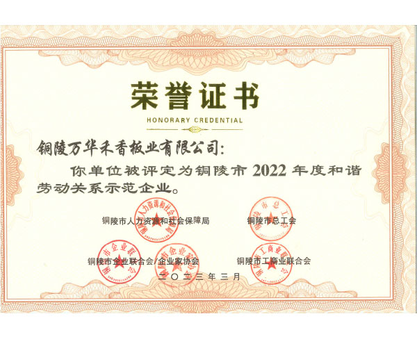 2023-3 2022年度銅陵市和諧勞動關系示範企業
