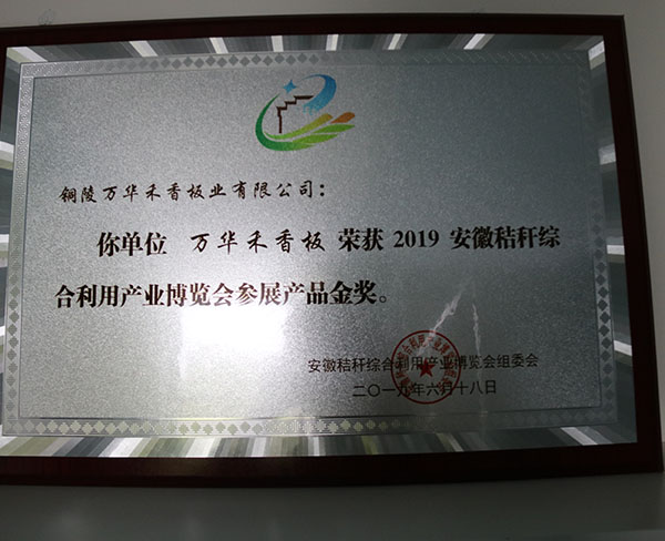 2019-6安(ān)徽稭稈綜合利用(yòng)産(chǎn)品博覽會參展産(chǎn)品金獎